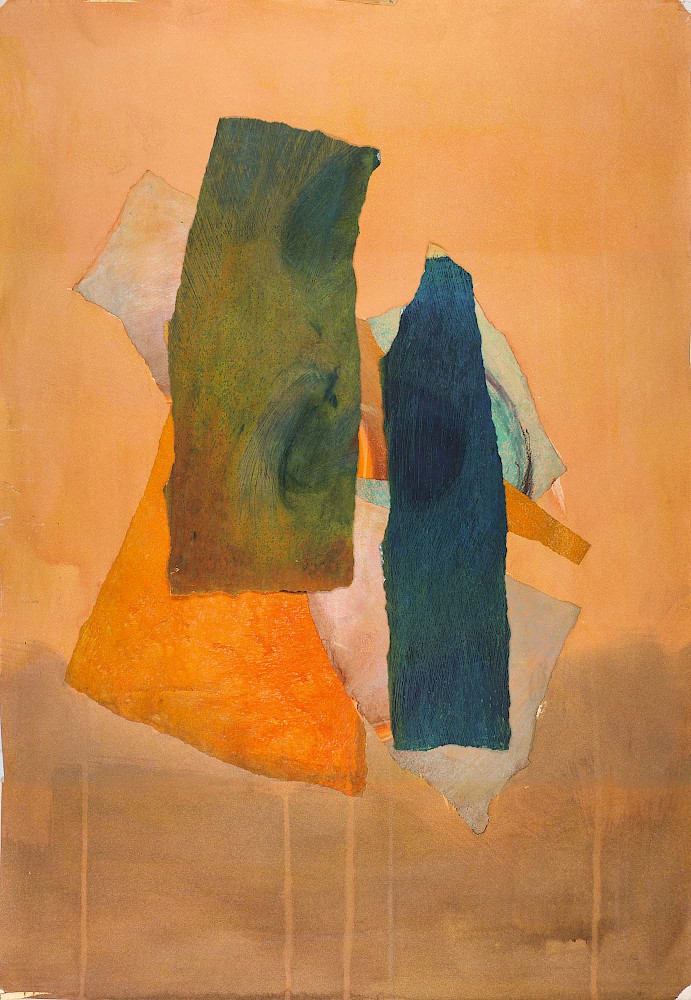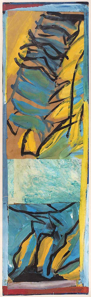 S004 stokvisjes op de markt 1985 aquarel-acryl collage afmetingen: 31 x 99